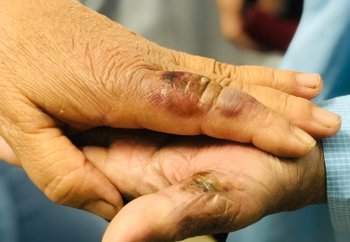 Vết chuột cắn trên tay hai bệnh nhân bị sưng tấy, phù nề sau khi điều trị đã dần lành lặn trở lại. (Ảnh: Thuỳ Dương)