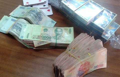 Tang vật thu giữ tại hiện trường gồm nhiều bộ bài và 45 triệu đồng tiền mặt, thu giữ trên người các đối tượng thêm 170 triệu đồng.
