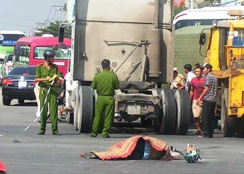 Sau cú va chạm mạnh với xe máy, xe bồn cuốn cả nạn nhân và xe máy vào gầm. Container chỉ dừng lại khi kéo lê cả hai về phía trước hơn 10 mét, ông Tài bị bánh xe cán qua chết tại chỗ.