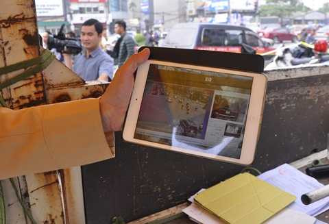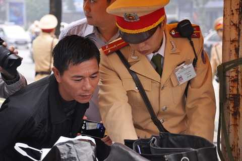 Sau khi thông tin phương tiện vi phạm được thông báo qua bộ đàm, tổ CSGT lập tức rà soát phương tiện và yêu cầu dừng xe kiểm tra. Lúc này, hình ảnh vi phạm cũng được gửi về điện thoại của lực lượng chốt chặn trên đường để giải thích lỗi cho người vi phạm.