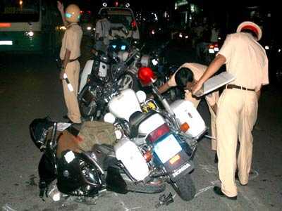 23/07/2012 02:49:00 +07:00Khi tổ công tác CSGT đang xử lý vụ 2 thanh niên không đội MBH thì đối tượng cầm lái có biểu hiện chống đối và dùng đá đập nát chiếc xe của mình.