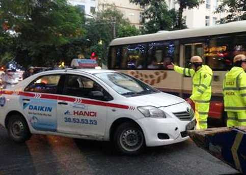 Lực lượng CSGT đã ra quyết định xử phạt lái xe taxi trên với hai lỗi: dừng đỗ phương tiện không đúng nơi quy định gây ùn tắc giao thông; không chấp hành yêu cầu kiểm tra của CSGT.