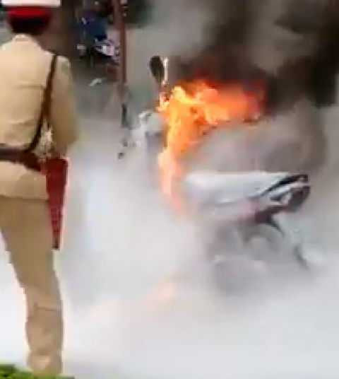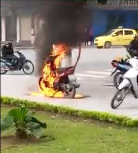 Sáng nay (13/1), đoạn video ghi lại hình ảnh chiếc xe máy BKS 29.S2 - 3000 đang bốc cháy ngùn ngụt trên vỉa hè được chia sẻ rộng rãi trên mạng xã hội facebook.