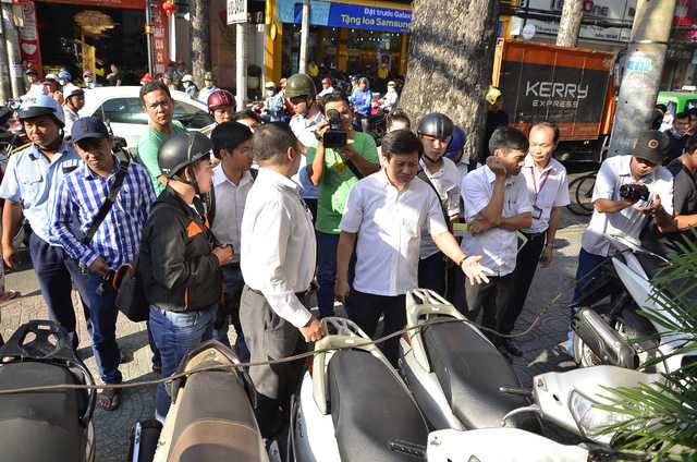 Ngay sau đó, ông Hải đã chất vấn cán bộ trật tự đô thị phường về việc để xảy ra tình trạng lấn chiếm vỉa hè làm chỗ đậu xe, và hỏi "có xử lý được ngay bây giờ không".