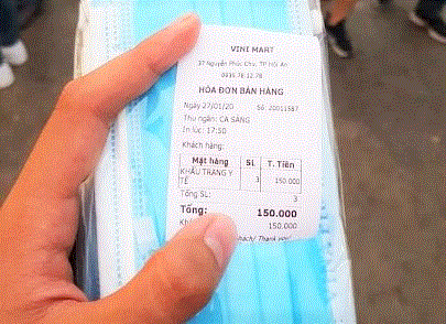 Hình ảnh hóa đơn bán hàng và khẩu trang lan truyền trên mạng xã hội. (Ảnh: F.B)