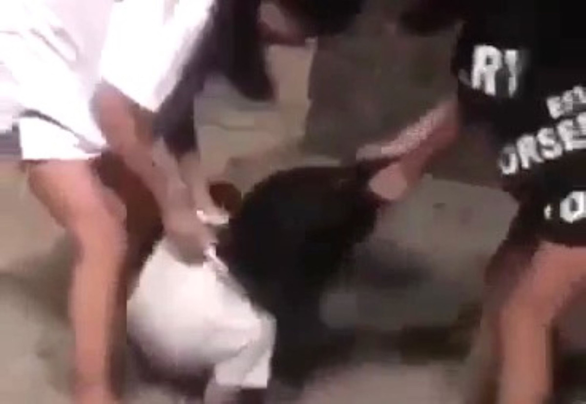 Cháu Nguyễn Thị Như T. bị túm tóc, đánh đập dã man. (Ảnh cắt từ clip)