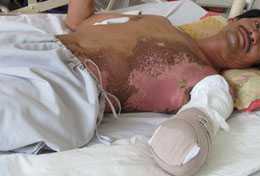 Sau đó, anh được chuyển đến khoa Phỏng, Bệnh viện Chợ Rẫy (TP.HCM). Do bị dòng điện phóng mạnh nên một phần bàn tay phải của anh bị hoại tử, bác sĩ phải cắt bỏ.