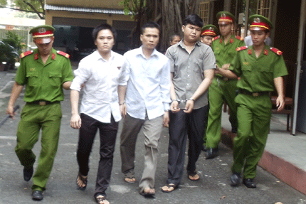 | Nguyên phía bên phải đang ra xe chở phạm cùng với các phạm nhân khác |
