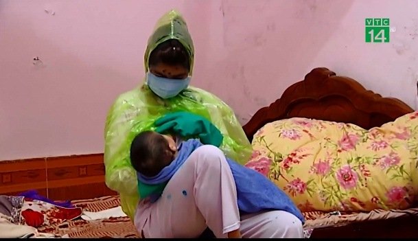 Bi hài bà mẹ trẻ mặc áo mưa, đeo khẩu trang cho con bú vì sợ lây thủy đậu
