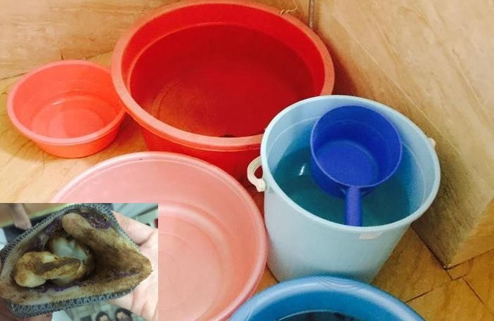 Không chỉ có chuyện tắm giặt là bức xúc của cư dân nơi đây vì thiếu nước. Anh L.X và nhiều người khác trong khu chung cư giờ đây phải "luyện" lại hệ bài tiết bằng cách nhịn đi vệ sinh tại nhà và “để dành” đến cơ quan. Tuy nhiên, không phải ai cũng có "cơ hội để dành" đến cơ quan, nhiều gia đình phải sắm bô để cả con cái và người lớn dùng chung.