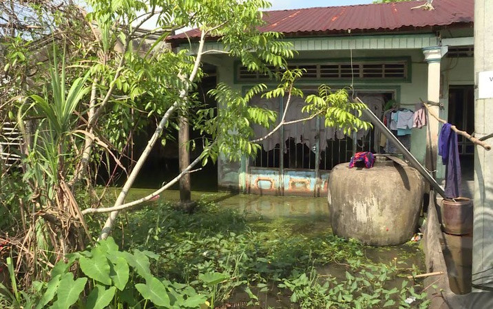 Nhà bị ngập nước thường xuyên ở khu dân cư Vĩnh Hòa Hưng Bắc.