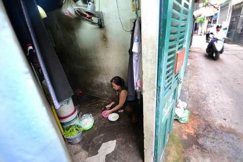 Nhà nhỏ nên sinh hoạt cũng trở nên khác biệt. Mỗi ngày chị Dung chỉ nấu một bữa cơm. Sáng, trưa ăn ngoài đường. Cái bếp phải dời ra ngoài cửa gần lối đi chung. Mưa thì bưng bếp ra ngoài đường có bạt che nấu tiếp. Mưa lớn quá thì bốn mẹ con ăn mì gói.