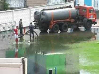 (VTC News) - Trong trận đấu ở giải Quốc gia Kazakhstan, mặc dù điều kiện thời tiết xấu, nước không thoát hết ra khỏi sân nên đã có những tình huống dở khóc dở cười cho cả hai đội, điển hình là pha phạt góc ở clip sau đây.
