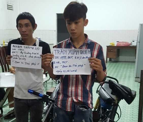 Hai "quái xế" đua xe bị tạm giữ cùng phương tiện. Ảnh Minh Anh
