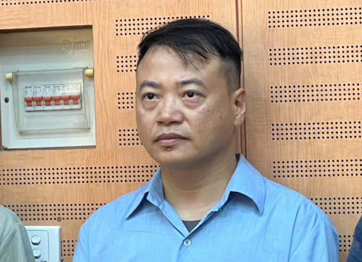 Ông Nguyễn Hòa Bình (Shark Bình) tại cơ quan công an.