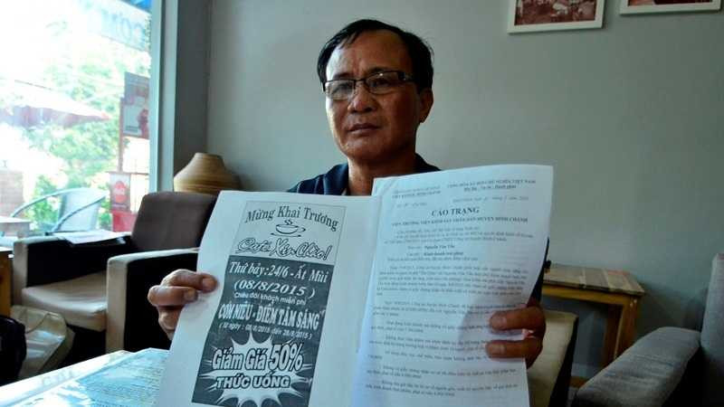 | Ông Nguyễn Văn Tấn chủ quán cà phê Xin Chào |