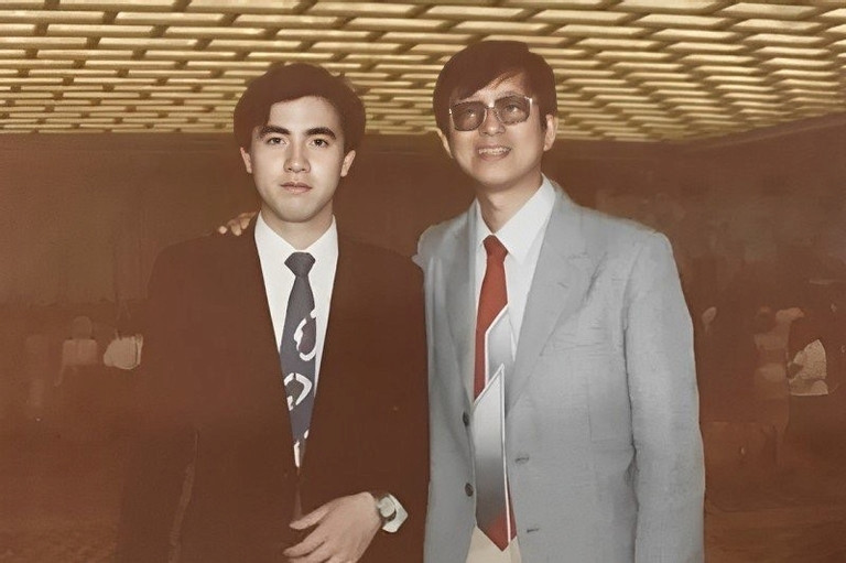Khổng Tường Đông (bên trái) 17 tuổi và người thầy Phạm Đại Lôi.