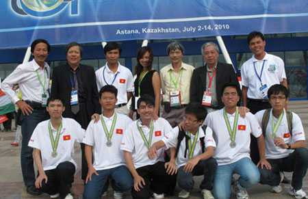 | Vũ Đình Long và đội tuyển toán. |