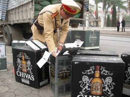 Ngay khi nhìn thấy lực lượng CSGT, chiếc xe ô tô 4 chỗ lao vút bỏ chạy. Ngay lập tức chiếc xe tải bị các CSGT kiểm tra hành chính và hàng trên thùng xe. Qua kiểm tra, lực lượng CSGT phát hiện rất nhiều thùng rượu ngoại mang nhãn hiệu như Chivas, Ballatines để lẫn với hàng trăm bao tải gạo.