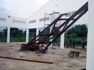 Được biết, đây là công trình dân sinh của xã Ia Blứ, do công ty Đầu tư và Xây dựng Phúc Thịnh Hoàng thi công. Hai người thợ vừa đến địa phương nhận hợp đồng phần khung sắt.
