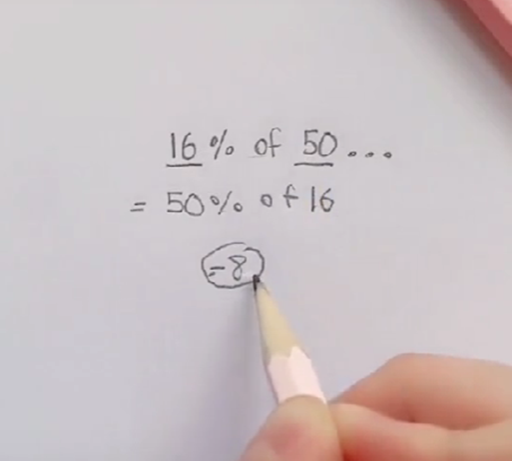 Cụ thể, nếu yêu cầu bạn tính 16% của 50, bạn sẽ cần sử dụng đến máy tính hoặc mất nhiều thời gian hơn để suy nghĩ.