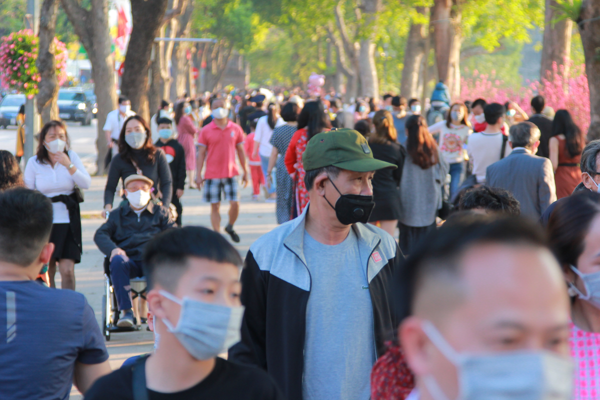 Chiều 30 Tết, trái ngược với tình trạng giao thông, hàng quán vắng vẻ thì tại khu vực Hồ Hoàn Kiếm, Hà Nội đông vui nhộn nhịp.