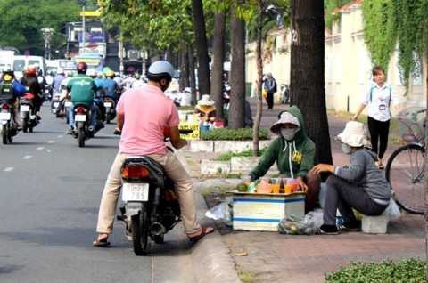 Trên đường Nguyễn Hữu Cảnh, đặc biệt đoạn gần Đại học Sài Gòn (quận 1, TP.HCM) tập trung nhiều điểm bán cam vắt giá 7.000 đồng/ly. Một đoạn đường khoảng 100 m nhưng đã có 8-9 người bán cam vắt siêu rẻ.