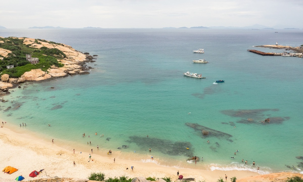 Bãi cát dài 500 mét ở vịnh Hạ Phong, đảo Miếu Loan. (Ảnh: China Daily)