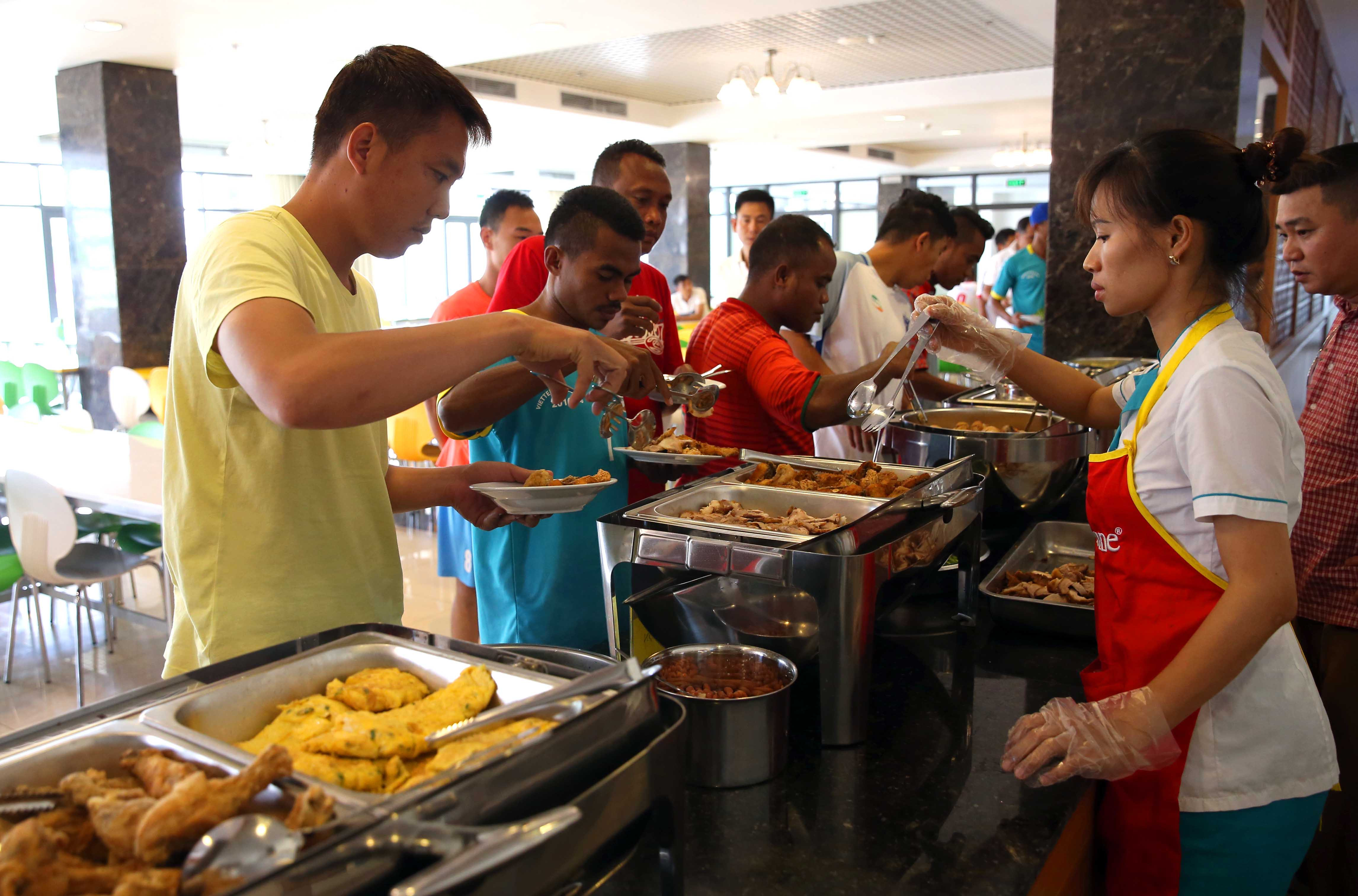 Nhờ sự chuẩn bị kỹ lưỡng ấy, bếp ăn của Viettel đã cung cấp những bữa ăn với hàng chục món đa dạng. Buffet có đủ các món Việt như: thịt kho, rau luộc, cá kho nhưng cũng có khoai tây, các loại thịt hầm, đồ cho người theo Đạo Hồi, Đạo Hindu... Các món ăn đa dạng, thay đổi từng ngày, đảm bảo cung cấp nguồn năng lượng dồi dào cho hoạt động thể thao.