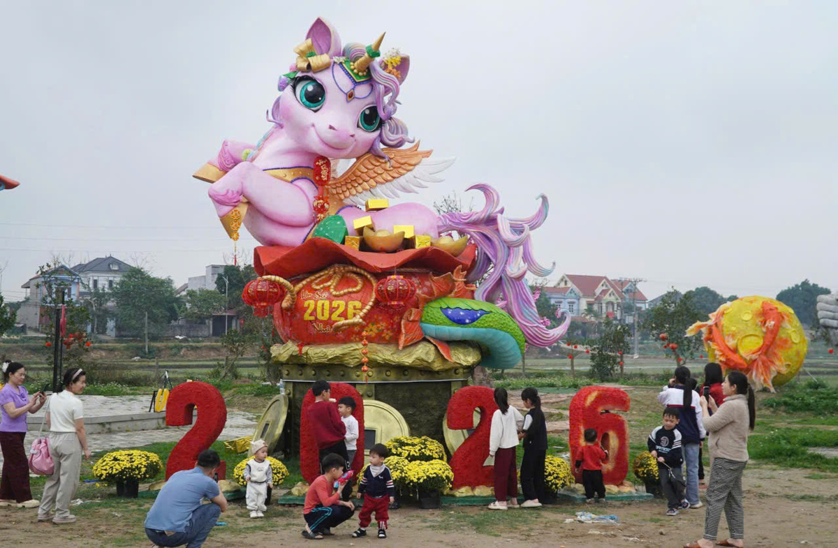 Những ngày cận Tết Nguyên đán 2026, các linh vật ngựa khổng lồ do anh Bùi Văn Quân (SN 1992) thực hiện trở thành điểm nhấn, thu hút đông đảo người dân đến tham quan, chụp ảnh.