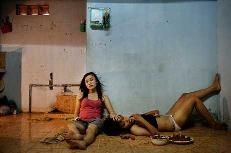"Hôm ấy chúng tôi chụp đến tận trưa. Lúc này nóng quá. Hai bác nảy ra ý định, tắm một chút cho mát. Tôi thích khoảng sân thượng này của họ. Đi đến mỗi ngôi nhà, tiếp xúc với mỗi cặp đôi, tôi luôn chú ý đến khoảng không gian để làm nền cho bức ảnh. Đến nhà của hai bác Hiếu và Thắng, tôi đã thích ngay khu sân thượng này. Và đây là bức hình mà chúng tôi có được".