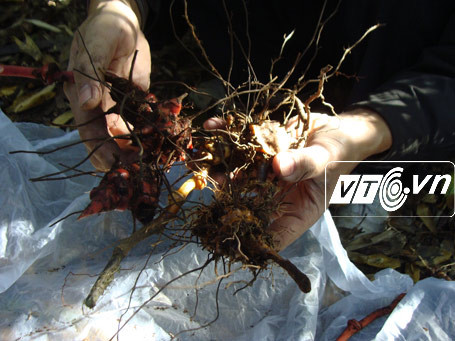 | Củ thuốc rất quý do ông Lâm phát hiện trên đỉnh Tây Côn Lĩnh (Hà Giang), ở độ cao 2.400m |