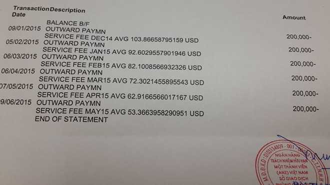 Theo sao kê, kể từ đầu năm 2015, chị Linh đã mất 1,2 triệu đồng phí quản lý. Còn thời gian trước đó, do không theo dõi nên chị hoàn toàn không biết cụ thể đã phải chịu tổng cộng bao nhiêu tiền phí.