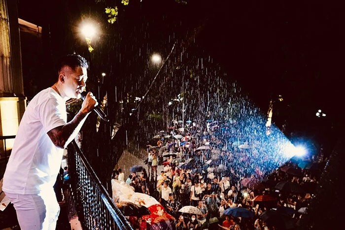 Ca sĩ Tuấn Hưng biểu diễn tại ban công thu hút hàng nghìn người theo dõi.