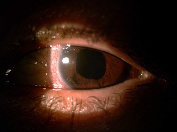 Bệnh nhân Đ. cho biết 4 tháng trước, trong lúc bơm rửa xe thì bị vòi xịt nước văng trúng vào mắt trái làm mắt đau nhức, nhìn mờ. Anh Đ. được đưa vào cấp cứu tại một bệnh viện ở địa phương lân cận và được chẩn đoán đứt chân mống mắt, tăng nhãn áp, xuất huyết tiền phòng sau chấn thương đụng dập. Sau khi điều trị ngoại trú, mắt anh Đ. giảm đau nhức nhưng thị lực vẫn chưa cải thiện nhiều.