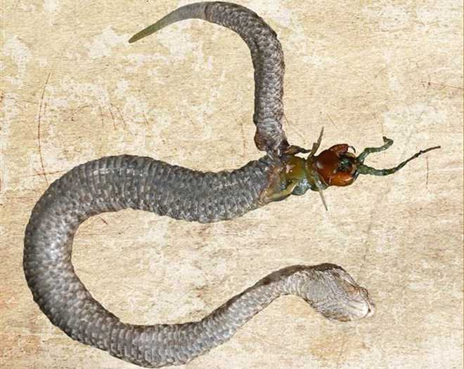 Nhà nghiên cứu bò sát Serbia Ljiljana Tomovic phát hiện ra xác con rắn và con rết trên đảo Golem Grad của Cộng hòa Macedonia. Ông Tomovic tin rằng, con rắn dài 20 cm do đánh giá thấp con mồi đã phải trả giá bằng cả tính mạng.