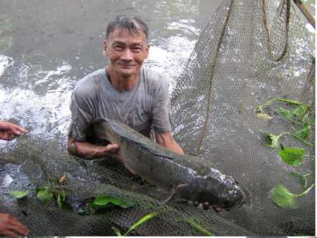 | Đánh bắt được cá lóc bự. |