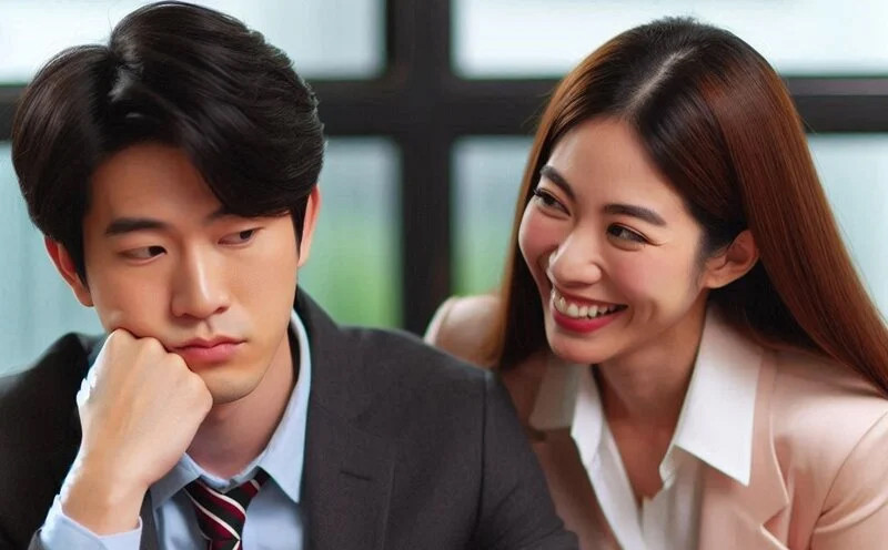 Người đàn ông có tên M.J. cho biết, sếp nữ (là con gái của chủ tịch công ty) liên tục tìm cách tiếp cận anh dù biết anh đã có gia đình. Người phụ nữ này thường xuyên mời M.J. đi ăn uống với lý do công việc. Trong những bữa ăn này, chị ta luôn có những lời nói và hành động gợi ý chuyện quan hệ tình cảm.