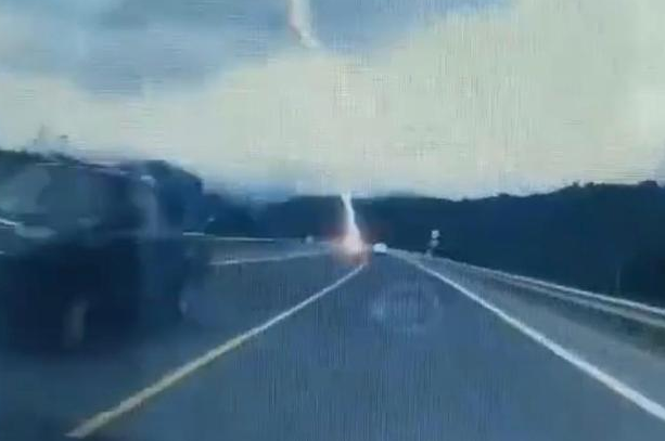 Vụ việc xảy ra tại Ninh Hải, Chiết Giang vào chiều 9/7. Trong video trích xuất từ camera hành trình của một chiếc ô tô, tia sét xẹt qua bầu trời, trúng ngay vào vị trí người phụ nữ.