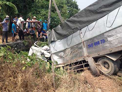 | Hiện trường vụ tai nạn khiến tài xế xe tải tử vong |