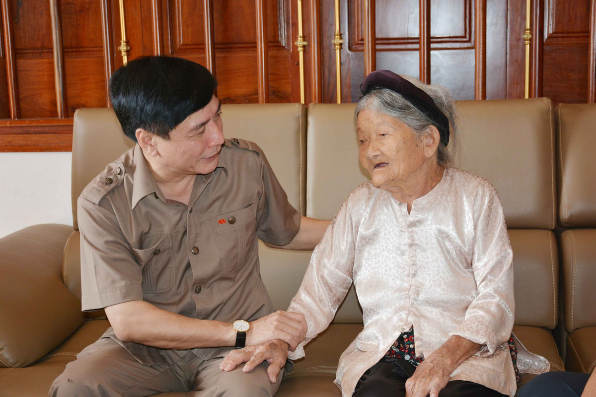 Mẹ Việt Nam anh hùng Đào Thị Lục 100 tuổi cảm động trước sự thăm hỏi ân cần của Bí thư tỉnh nhà.