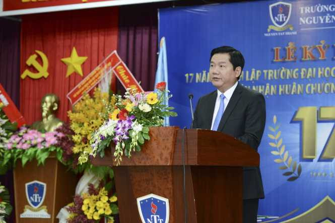 Bí thư Thành ủy TP.HCM Đinh La Thăng phát biểu tại lễ kỷ niệm 17 năm thành lập Trường ĐH Nguyễn Tất Thành. Ảnh: M.G