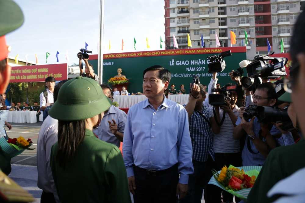Bí thư Thành ủy TP.HCM Đinh La Thăng tới động viên các thanh niên trẻ lên đường nhập ngũ hoàn thành tốt nhiệm vụ được giao