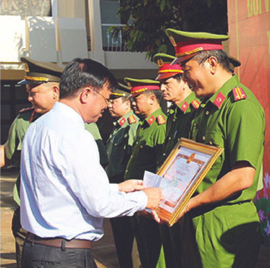 Chủ tịch UBND tỉnh Đồng Nai Cao Tiến Dũng trao bằng khen cho tập thể, cá nhân có thành tích xuất sắc trong phá án. (Ảnh: Báo Đồng Nai)