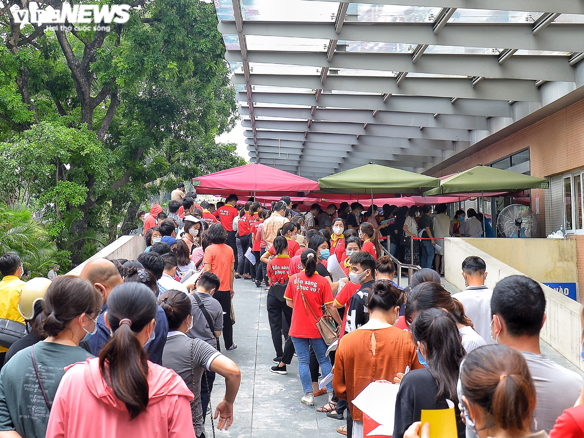 Dòng người chen chúc chờ tiêm vaccine COVID-19 ở Bệnh viện E.