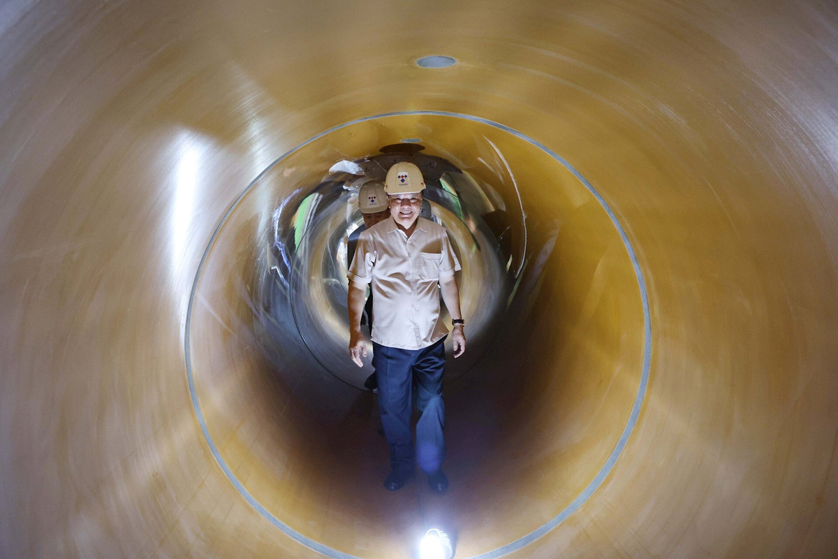 Bí thư Thành ủy Hà Nội và đoàn kiểm tra thực địa công trường gói thầu số 2, trực tiếp kiểm tra hệ thống cống ngầm dưới lòng sông Tô Lịch, khu vực ngã ba sông Lừ - sông Tô Lịch, thuộc địa bàn quận Hoàng Mai.