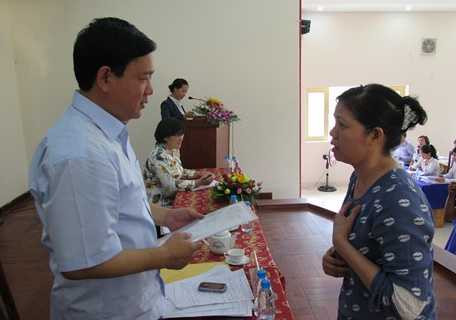 | Cử tri Nhạnh lên gặp trực tiếp Bí thư Thăng gửi đơn thư trình bày. Ảnh: Thanh Niên |