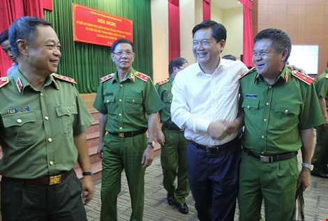 Mở đầu bài phát biểu, Bí thư Đinh La Thăng đánh giá cao và biểu dương những nỗ lực lớn của lực lượng công an Thành phố, tội phạm đã bị tấn công, truy quét ở nhiều nơi.