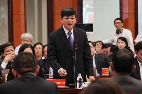 | Phó cục trưởng Cục Hải quan TP Nguyễn Hữu Nghiệp trả lời chất vấn của Bí thư Đinh La Thăng. Ảnh: Hoàng Giang |