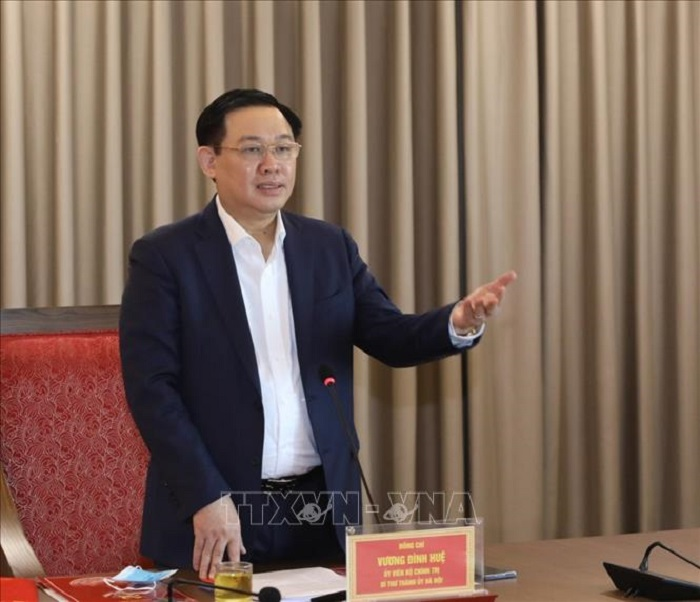 Bí thư Thành ủy Hà Nội Vương Đình Huệ phát biểu chỉ đạo tại buổi làm việc với Ban Dân vận Thành ủy. Ảnh: Văn Điệp/TTXVN